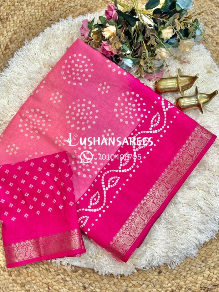 *Saree :-* Beautiful Tasva Silk Saree with All-Over Bandhani Print